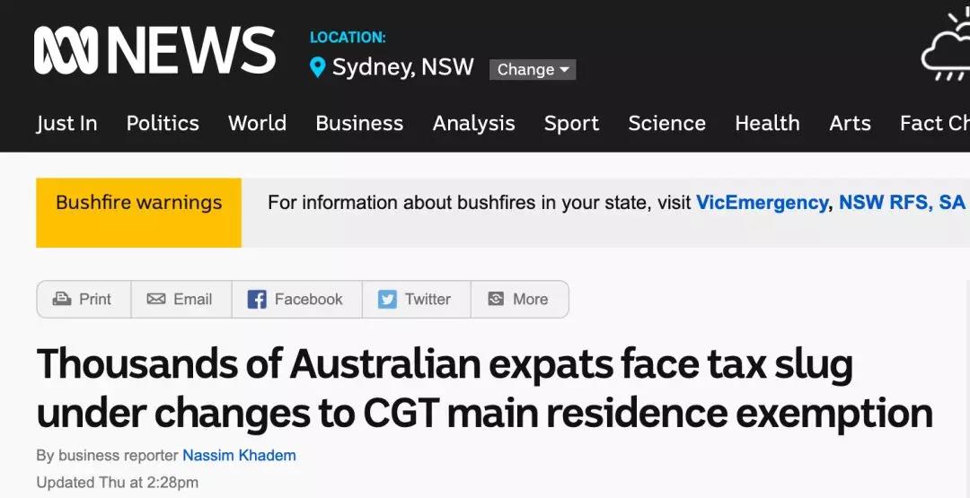 據(jù)ABC報(bào)道,上個(gè)月,澳洲聯(lián)邦參議院最終通過(guò)了針對(duì)海外居留人士的資本利得稅改革方案。該法取消了自1985年9月20日以來(lái),對(duì)澳洲僑民的集體稅率豁免。