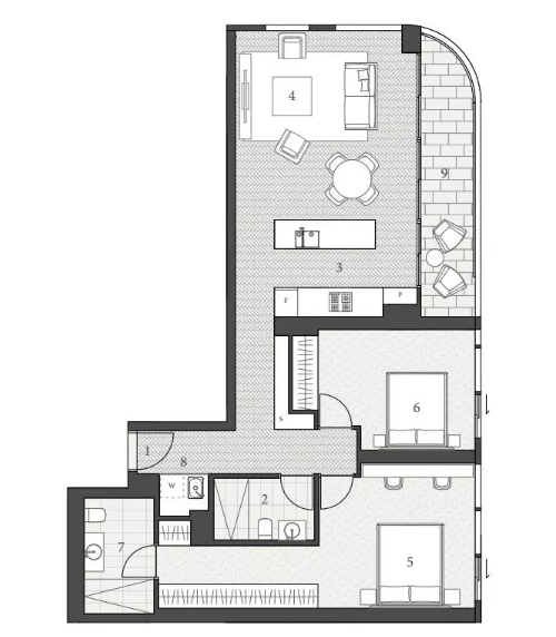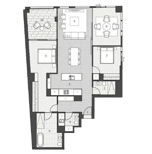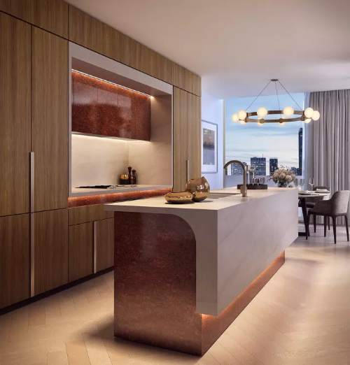 公寓的外觀由國際著名的澳大利亞建筑公司FJMT操刀設計,室內設計由FJMT Interiors負責。采用奢華代表的家電品牌Gaggenau以及Fisher & Paykel。