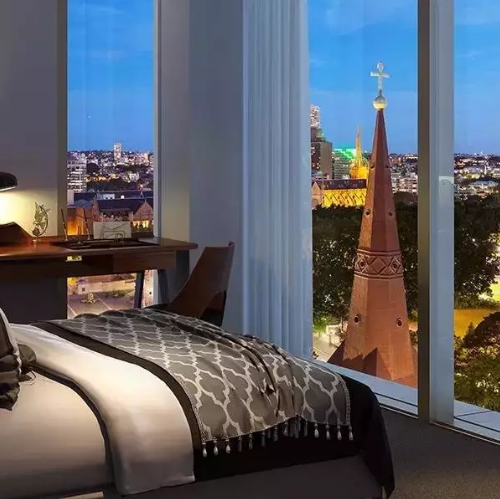 公寓大樓為92米高,采用26層布局,其中23層專門作住宅。King & Phillip為住戶提供由青銅色玻璃裝飾的天臺花園。