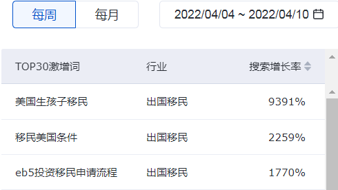 根據(jù)百度最新公布的周數(shù)據(jù),【移居加拿大條件】詞條搜索暴增2846%!【移民美國(guó)條件】詞條搜索暴增2259%!