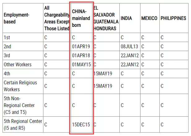 ·EB-5直投類別無排期;EB-5區域中心類別停滯在2015年12月15日。