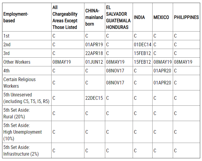 EB-2類別:排期為2019年4月1日,無變化