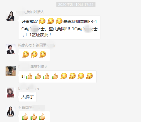 重慶貴賓客戶(hù)L女士美國(guó)EB-1C項(xiàng)目L-1簽證獲批