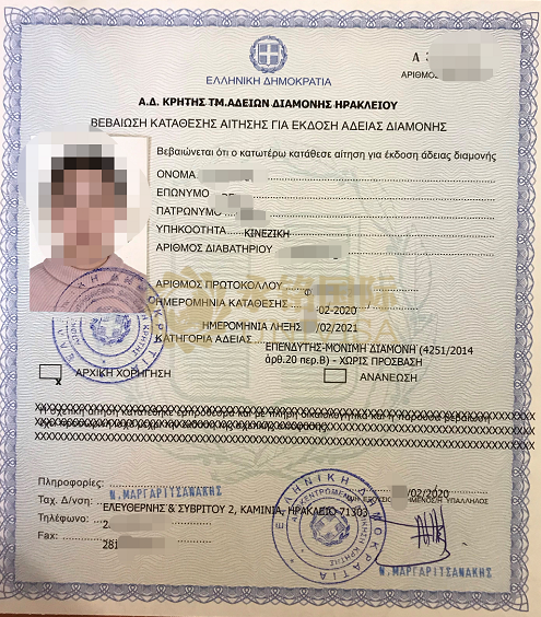 成都貴賓客戶(hù)Z先生一家獲批希臘藍(lán)紙